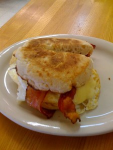 When Geoff accidentally left for Boston with the car keys this morning, I decided to walk Madeline to school which is 1.5 miles from our house. It doesn’t sound so bad, and it only took about 25 minutes. But having to turn around and come back home seconds later for the same journey with no breakfast and no caffeine was definitely not a good thing. So I decided to stop on my way home at Butcher Shop Café & Deli. I’ve passed this place four times every school day in the car, but never stopped. Today, it appeared to me like a mirage in the desert — oh please let there be egg sandwiches. Yatzee! I’m not sure that after my 2 miles of walking I could accurately judge (cardboard might have tasted good), but I’m pretty sure it was the best egg sandwich I’ve ever eaten. It wasn’t oozy as some, but the bacon was crisp and meaty and the egg on the well-done side — just the way I like it. How did they know?