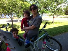 Getting ready for a ride on the trailer bike.