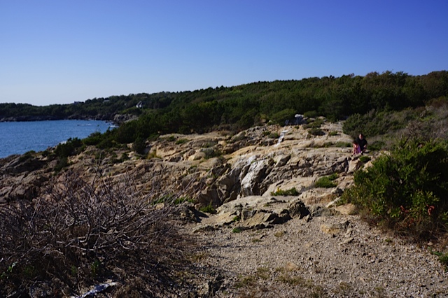 Not everyone may think it’s a wise idea to drag their one- and five-year-olds up a jagged cliff overlooking a 100-foot drop to the ocean, and I can’t disagree. Nonetheless, we did exactly that yesterday at Forth Wetherill State Park in Jamestown, RI. Here, there are no fences or barriers to rely on, just common sense. Geoff liked that — it’s very European, he said.