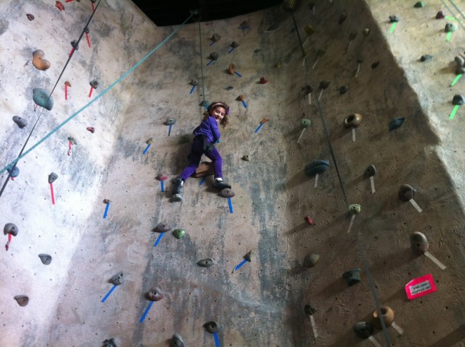 It was as if she’d been rock climbing her whole life. That said, she is only five. Today, my daughter kept up with the best adult climbers as she adeptly made her way up the 30-foot climbing wall at Rock Spot Climbing in Lincoln over half a dozen times. Using top roped climbing, she was harnessed into a belay device to protect against a sudden fall and create a smooth, slow (and apparently fun) ride down.