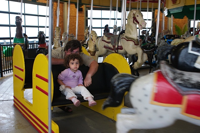 Madeline chose an inside horse, and after two rides appeared sufficiently mesmerized so I figured she’d had enough. Our next stop will be either the Crescent Park Carousel in East Providence or the Slater Memorial Park Carousel in Pawtucket…